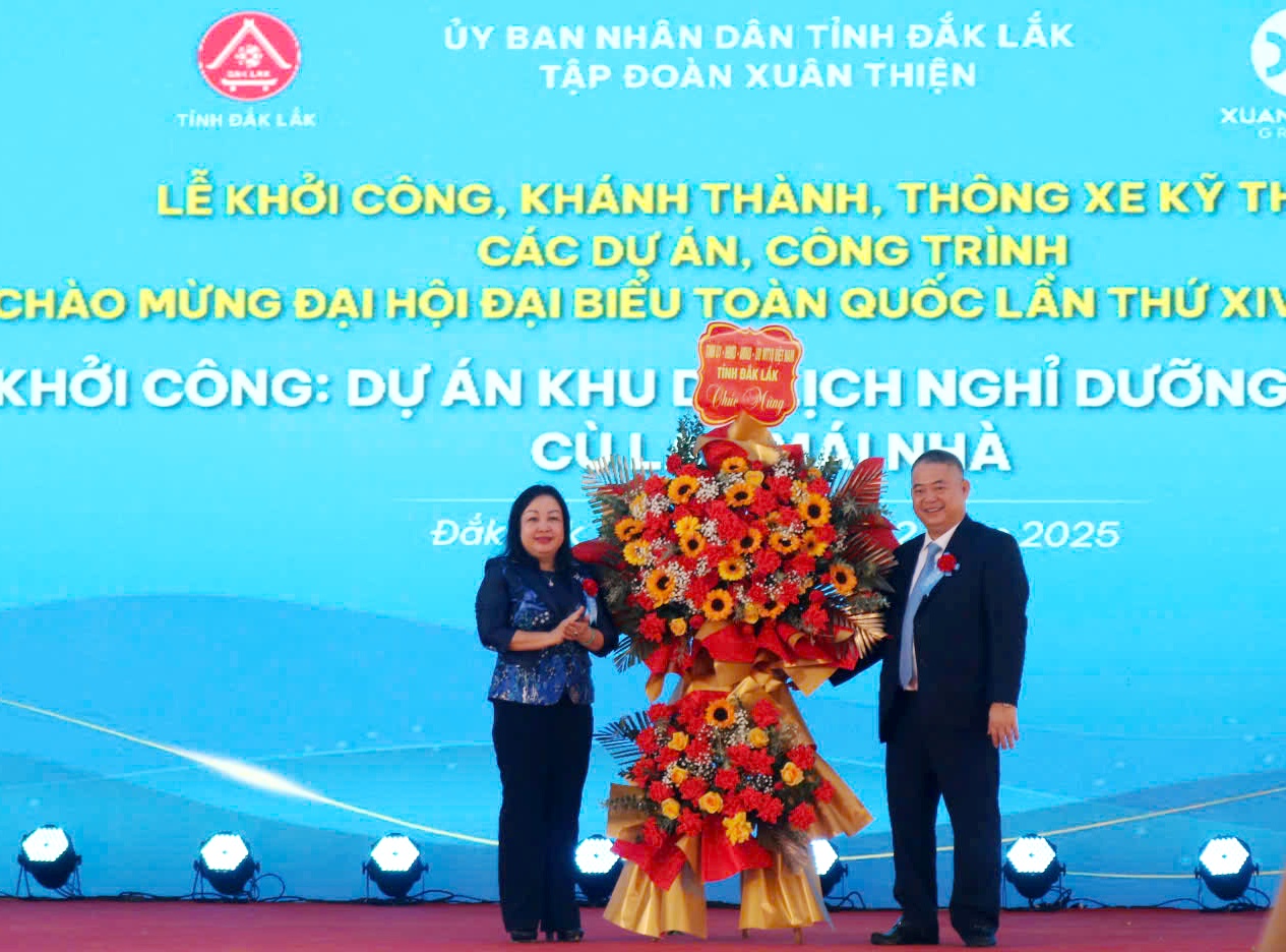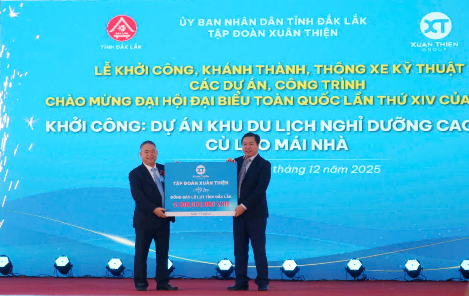 On this occasion, demonstrating its social responsibility, Xuan Thien Group donated 5 billion VND to Dak Lak province to support natural disaster relief efforts and local community welfare.