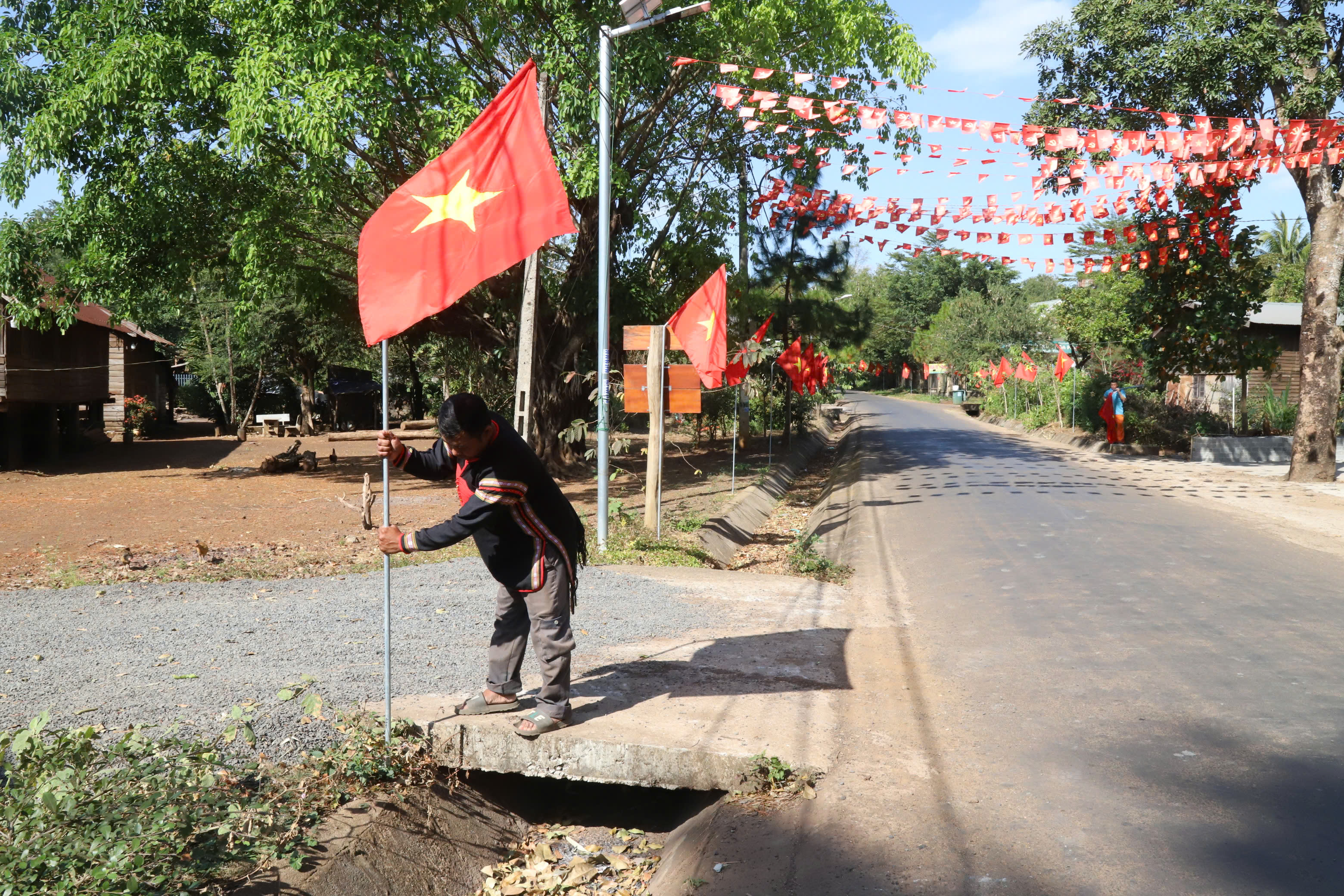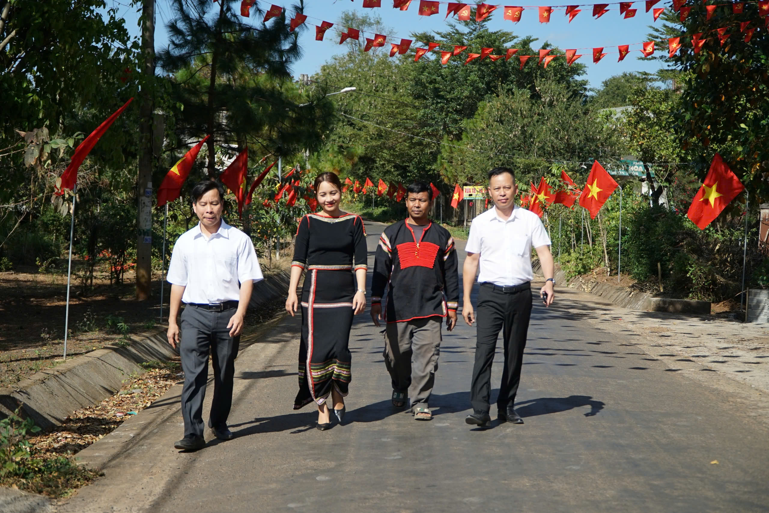 In anticipation of the 14th National Congress of the Party, streets from urban centers to remote border villages in Dak Lak province are brilliantly adorned with the crimson of the National and Party flags. An atmosphere of patriotic competition permeates every residential area, reflected in practical grassroots projects that showcase the unity and unwavering trust of various ethnic groups in this major national political event.