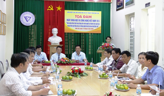 Sáng 17/5, Liên hiệp các Hội Khoa học và Kỹ thuật tỉnh Đắk Lắk đã tổ chức Tọa đàm Ngày Khoa học và Công nghệ Việt Nam (18/5). Tham dự buổi Tọa đàm có ông Lê Năng Hảo- Phó Trưởng Ban Tổ chức Tỉnh ủy; ông Nguyễn Cảnh – Phó Trưởng Ban Tuyên giáo Tỉnh ủy; ông Vương Hữu Nhi- Chủ tịch Liên hiệp các Hội Khoa học và Kỹ thuật tỉnh Đắk Lắk, các nhà quản lý, nhà khoa học, nhà trí thức.