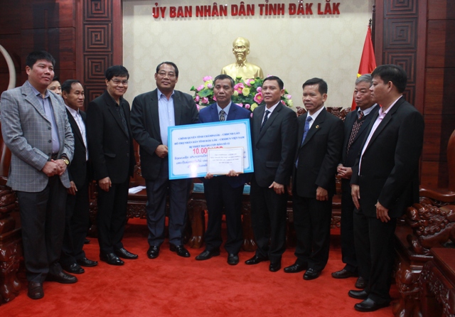 Sáng 22/12, Đoàn công tác tỉnh Chămpasắk- Cộng hòa Dân chủ Nhân dân Lào do ông Bualin Vongphachan, Phó Tỉnh trưởng tỉnh Chămpasắk làm trưởng đoàn đã đến thăm và chia sẻ những thiệt hại do cơn bão số 12 với nhân dân tỉnh Đắk Lắk. Tiếp và làm việc với Đoàn có Phó Chủ tịch UBND tỉnh Nguyễn Tuấn Hà; lãnh đạo Sở, ngành.