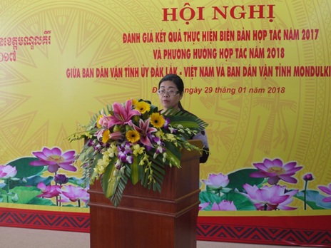 Sau một năm triển khai thực hiện, ngày 29/01/2018, tại tỉnh Đắk Lắk, Ban Dân vận tỉnh Đắk Lắk - Việt Nam và Ban Dân vận tỉnh Mondulkiri - Campuchia tổ chức hội nghị đánh giá việc thực hiện biên bản thỏa thuận hợp tác về công tác dân vận giữa Ban dân vận hai tỉnh năm 2017 và cùng triển khai phương hướng, nhiệm vụ hợp tác năm 2018.