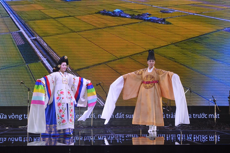 Dưới sự đạo diễn của trưởng đoàn kiêm chỉ huy dàn nhạc nghệ sĩ Chô Giông An, các nghệ sĩ, nghệ nhân của đoàn Jeollabuk –do đã trình diễn nhiều tiết mục độc đáo như: bài ca dân gian Namdo Airang; bài quốc nhạc sôcưm changsu; bài múa thái bình (the phieng mu); bản hợp tấu các loại trống “Tha”...Các tiết mục đã nhận được sự cổ vũ, động viên của đông đảo các đại biểu.