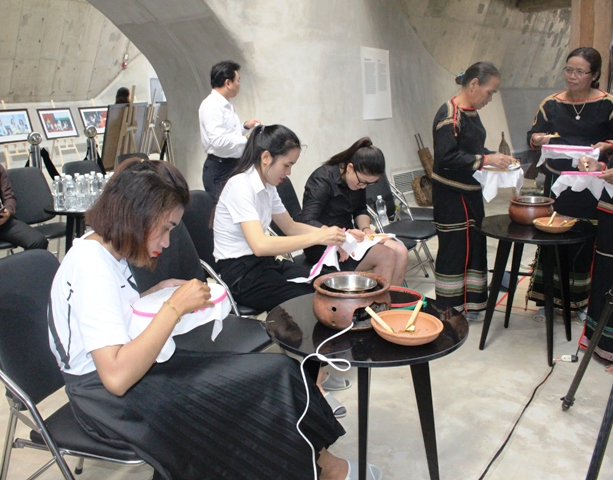 Tại đây, du khách đã được trải nghiệm, thưởng lãm những tác phẩm nghệ thuật trên vải và thông qua sự hướng dẫn của các nghệ nhân mọi người sẽ cùng tham gia trực tiếp sáng tạo ra tác phẩm cho riêng mình.