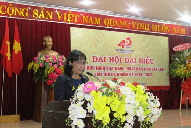 Phát biểu tại Đại hội, đồng chí Phạm Minh Tấn, Phó Bí thư Thường trực Tỉnh ủy ghi nhận và đánh giá cao kết quả hoạt động của Hội hữu nghị Việt Nam-Nhật Bản tỉnh Đắk Lắk thời gian qua. Nhiệm kỳ tới, đề nghị Hội tiếp tục xây dựng chương trình hành động thiết thực, chủ động hội nhập quốc tế, tiếp tục đưa quan hệ đoàn kết, hữu nghị Việt Nam – Nhật Bản, và giữa tỉnh Đắk Lắk với các địa phương của Nhật Bản đi vào chiều sâu và thực chất hơn; đẩy mạnh hơn nữa các hoạt động đối ngoại nhân dân; chủ động kêu gọi doanh nghiệp Nhật Bản đầu tư vào tỉnh. Quan tâm chăm lo phát triển hội viên, xây dựng tổ chức Hội ngày càng vững mạnh, để Hội thực sự là cầu nối vun đắp cho tình hữu nghị Việt Nam – Nhật Bản.