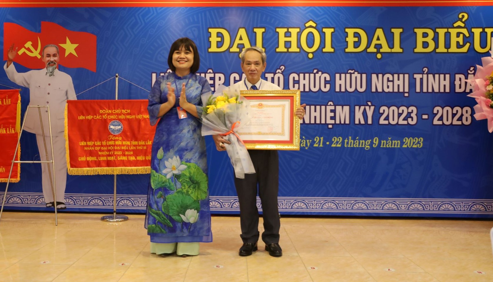Bên cạnh đó, Liên hiệp các tổ chức hữu nghị Việt Nam đã tặng Bằng khen cho 3 cá nhân đã có nhiều đóng góp tích cực trong công tác đối ngoại nhân dân nhiệm kỳ 2017-2022; trao tặng Kỷ niệm chương “Vì hòa bình, hữu nghị giữa các dân tộc” cho 4 cá nhân vì đã có nhiều đóng góp tích cực trong công tác đối ngoại nhân dân.