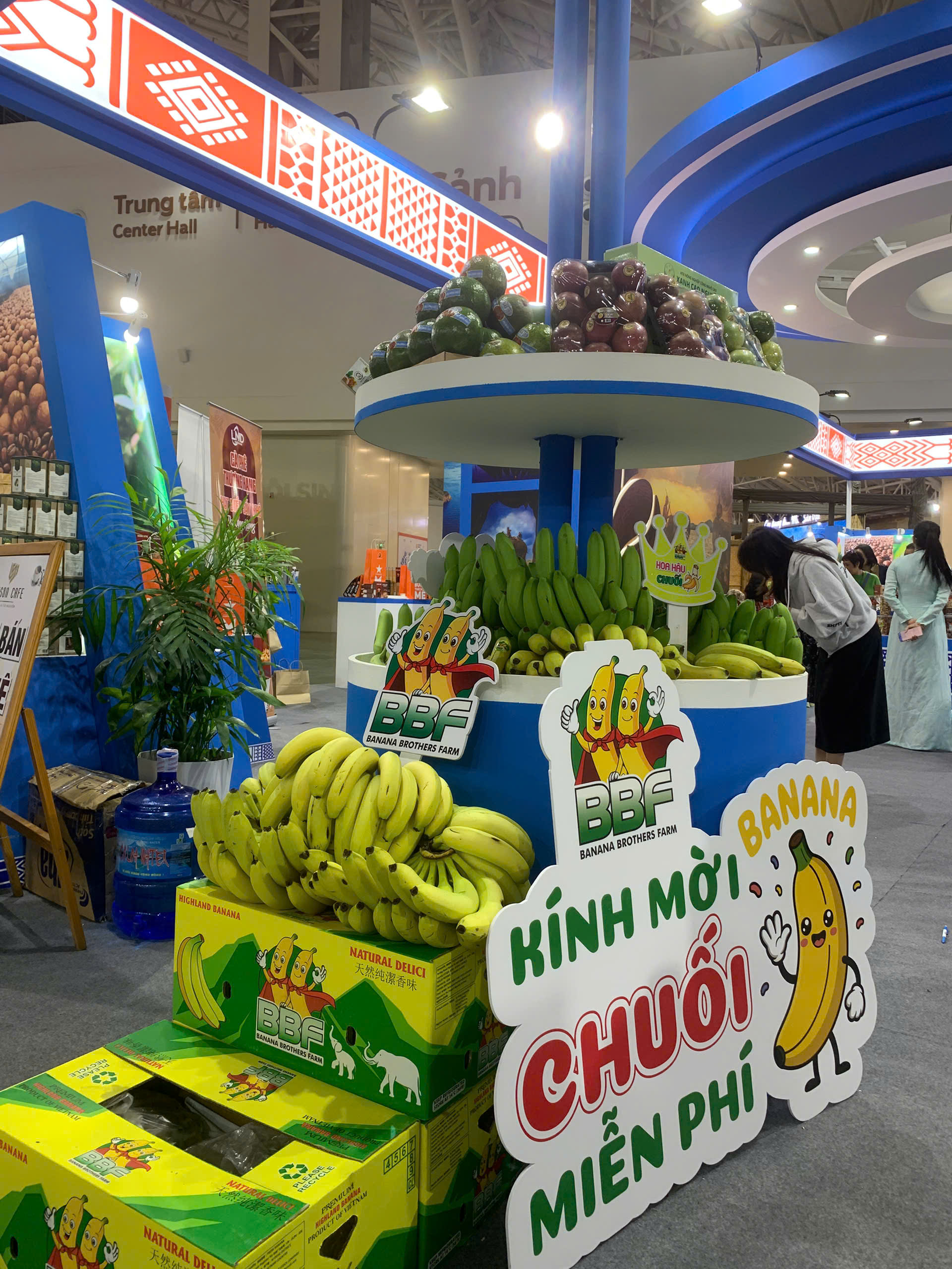 Sản phẩm chuối tươi của Công ty Cổ phần Banana Brothers Farm (Đắk Lắk) mời du khách thưởng thức miễn phí