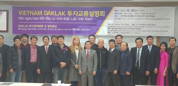 Dịp này, Đắk Lắk có 03 gian hàng của 05 doanh nghiệp tham dự Triển lãm với các sản phẩm đặc trưng của tỉnh như: Cà phê, thảo dược truyền thống (thuốc Amakong), hạt sachi, dầu sachi và mật ong đã được sự quan tâm nhiệt tình của khách tham quan. Ngoài việc giới thiệu sản phẩm, các doanh nghiệp của tỉnh còn chủ động tìm kiếm, kết nối với các doanh nghiệp trong Triển lãm. Đặc biệt, các gian hàng của doanh nghiệp Đắk Lắk còn được Ngài Tỉnh trưởng và Trưởng khoa Hợp tác quốc tế tỉnh Jeollabuk đến thăm, tìm hiểu sản phẩm.