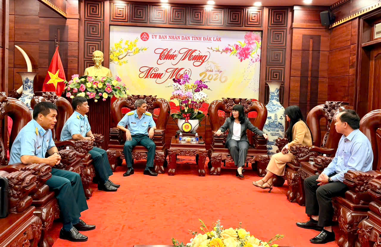 Nhân dịp đón Tết Nguyên đán Bính Ngọ 2026, Phó Chủ tịch Thường trực UBND tỉnh Hồ Thị Nguyên Thảo đã gửi lời chúc sức khỏe tới tập thể lãnh đạo, cán bộ, chiến sĩ, học viên Trường sĩ quan Không quân, đồng thời mong muốn trong thời gian tới, đơn vị tiếp tục gắn bó, phối hợp hiệu quả cùng tỉnh Đắk Lắk nỗ lực hoàn thành tốt mọi nhiệm vụ được giao.