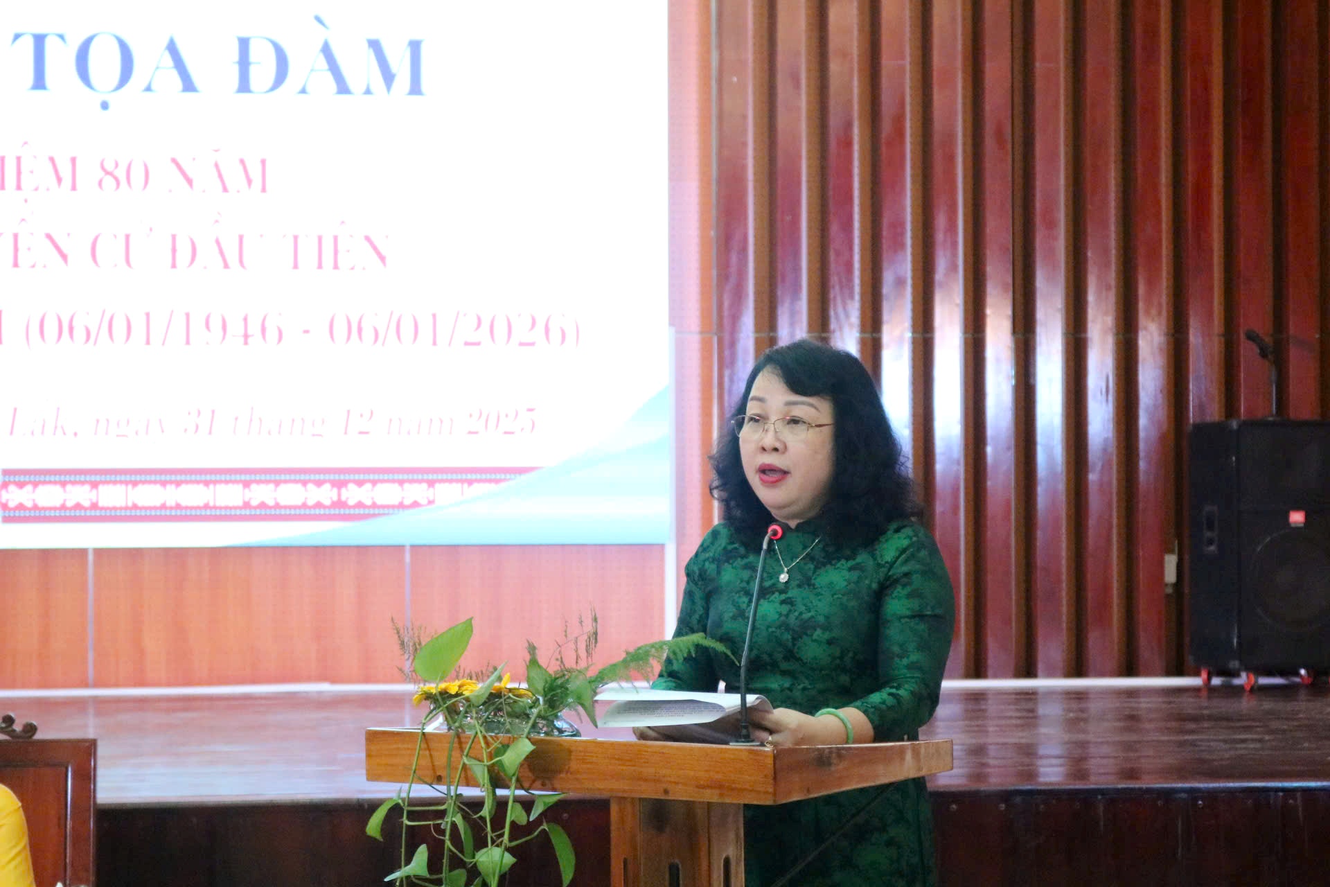 Phát biểu khai mạc buổi gặp mặt, đồng chí Cao Thị Hòa An, Phó Bí thư Thường trực Tỉnh ủy, Chủ tịch HĐND tỉnh nhấn mạnh ý nghĩa lịch sử đặc biệt của cuộc Tổng tuyển cử ngày 06/01/1946. Đây là sự kiện trọng đại đánh dấu bước ngoặt trong lịch sử dân tộc, khẳng định quyền làm chủ của Nhân dân và đặt nền móng cho sự ra đời của Quốc hội Việt Nam.