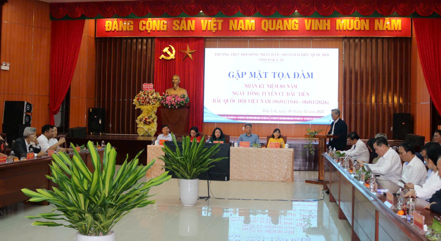 Đồng chí Phó Bí thư Thường trực Tỉnh ủy khẳng định, trải qua 80 năm hình thành và phát triển, Quốc hội Việt Nam không ngừng được củng cố, trưởng thành, luôn gắn bó mật thiết với Nhân dân, giữ vai trò trung tâm trong việc xây dựng và hoàn thiện hệ thống pháp luật, quyết định những vấn đề quan trọng của đất nước. Kế thừa truyền thống đó, các thế hệ đại biểu Quốc hội và HĐND tỉnh Đắk Lắk (cũ), Phú Yên (trước đây) và tỉnh Đắk Lắk hiện nay luôn phát huy tốt vai trò đại diện cho ý chí, nguyện vọng của cử tri; không ngừng đổi mới phương thức hoạt động, nâng cao chất lượng quyết định và giám sát, góp phần xây dựng tỉnh Đắk Lắk ngày càng phát triển nhanh, bền vững, văn minh, bản sắc.