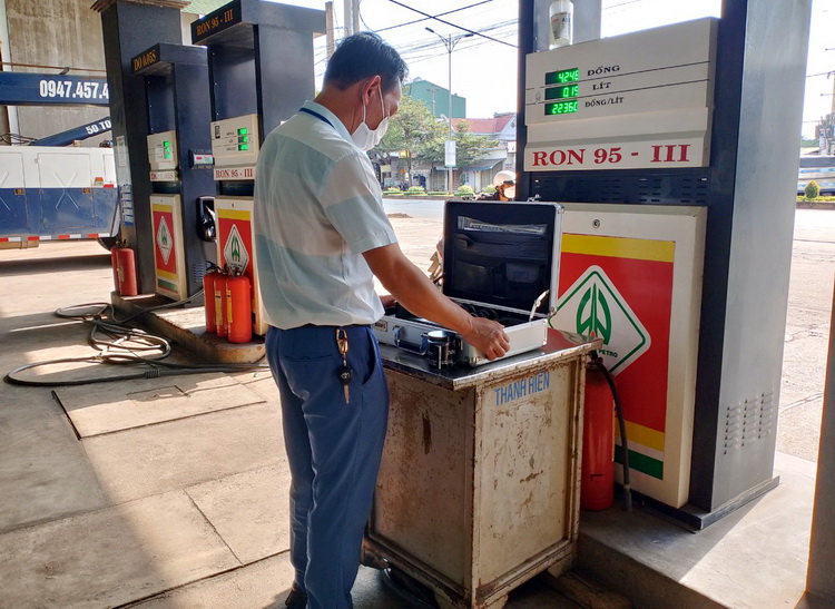 Kiểm tra đo lường, chất lượng xăng dầu tại một cơ sở kinh doanh xăng dầu.