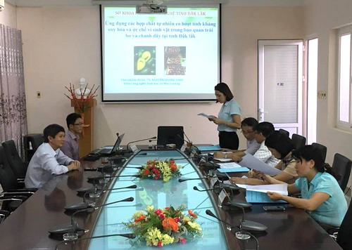 Chiều ngày 02/6, Sở Khoa học và Công nghệ tổ chức Hội đồng tư vấn giao trực tiếp Đề tài cấp cơ sở: "Ứng dụng các hợp chất tự nhiên có hoạt tính kháng oxy hóa và ức chế vi sinh vật trong bảo quản trái bơ và chanh dây tại tỉnh Đắk Lắk". Đề tài do Viện Công nghệ Sinh học - Trường Đại học Tây Nguyên thực hiện, chủ nhiệm đề tài là Ts. Nguyễn Quang Vinh.