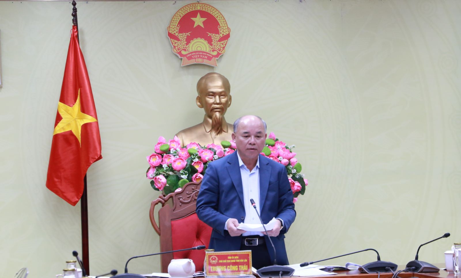Phó Chủ tịch UBND tỉnh Trương Công Thái phát biểu tại hội nghị.
