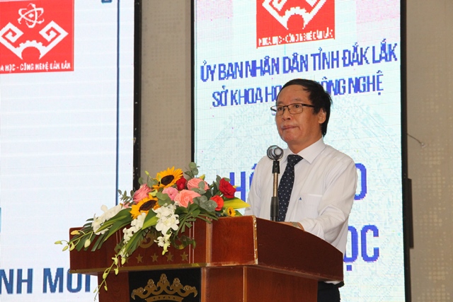 Tiến sĩ Đinh Khắc Tuấn- Giám đốc Sở Khoa học và Công nghệ phát biểu khai mạc Hội thảo
