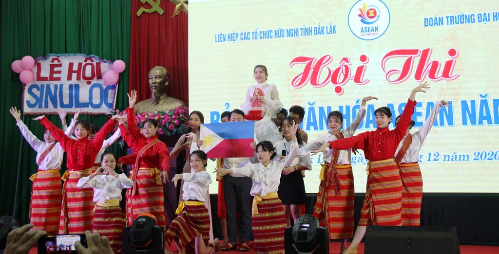 Sáng 5/12, Liên hiệp các tổ chức hữu nghị tỉnh Đắk Lắk phối hợp với Đoàn trường Đại học Tây Nguyên tổ chức Hội thi Bản sắc Văn hóa ASEAN năm 2020 nhân kỷ niệm 25 năm Việt Nam gia nhập ASEAN và chào mừng năm Việt Nam là Chủ tịch ASEAN 2020 với chủ đề “ASEAN gắn kết và chủ động thích ứng”.