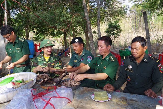 Tiếp đón đoàn công tác có các sĩ quan, binh sĩ đồn Ô Rô, các trung đội bảo vệ biên giới bộ thuộc lực lượng vũ trang tỉnh Mondulkiri và Đồn Piêm Ô Liêu, chốt 43 thuộc lực lượng vũ trang tỉnh Rattarakiri.
