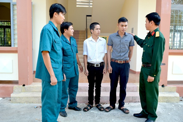 Cán bộ Ban Chỉ huy Quân sự huyện và thị trấn Ea Súp động viên những thanh niên trúng tuyển nghĩa vụ quân sự năm 2016 trước lúc lên đường nhập ngũ. |