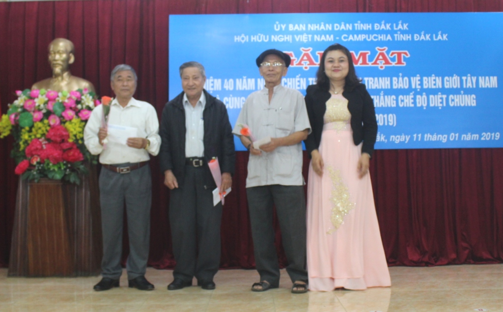 Sáng 11/1, Hội Hữu nghị Việt Nam – Campuchia tỉnh Đắk Lắk tổ chức buổi gặp mặt Kỷ niệm 40 năm Ngày chiến thắng chiến tranh bảo vệ biên giới Tây Nam và cùng quân dân Campuchia chiến thắng chế độ diệt chủng (7/1/1979-7/1/2019). Tham dự buổi gặp mặt có Phó Chủ tịch UBND tỉnh H’Yim Kđoh cùng đại diện lãnh đạo các sở, ban, ngành liên quan trong tỉnh.