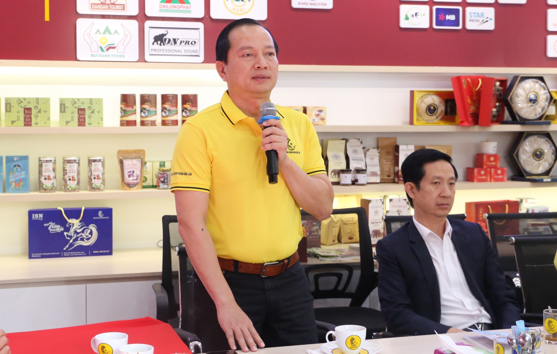 Phó Chủ tịch Thường trực Hiệp hội Doanh nhân Đắk Lắk Trần Đình Tuấn phát biểu tại buổi gặp mặt.