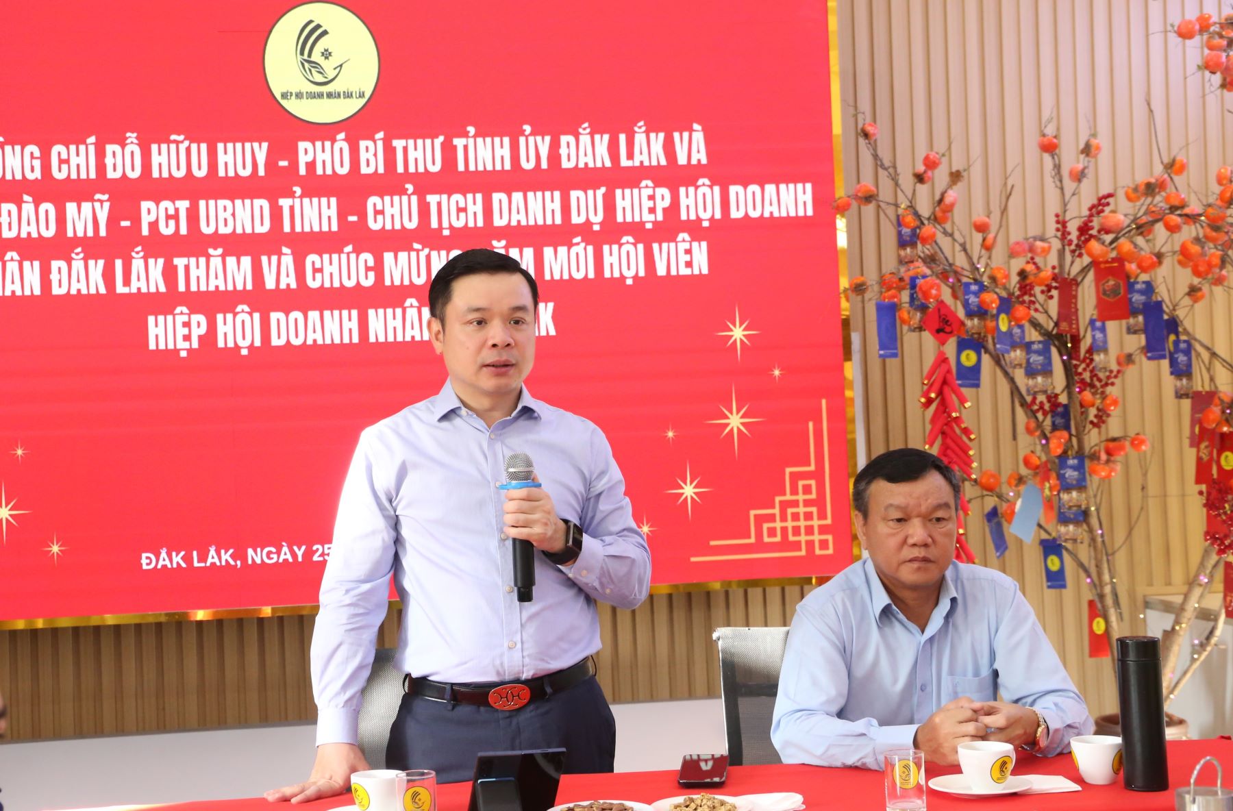 Tại buổi gặp mặt, Ủy viên dự khuyết Ban Chấp hành Trung ương Đảng, Phó Bí thư Tỉnh ủy Đỗ Hữu Huy đã gửi lời chúc mừng năm mới sức khỏe, hạnh phúc và thành công tới tập thể lãnh đạo, hội viên Hiệp hội; chúc Hiệp hội Doanh nhân Đắk Lắk năm mới thắng lợi, phát triển bền vững và đạt nhiều thành công trên mọi lĩnh vực.