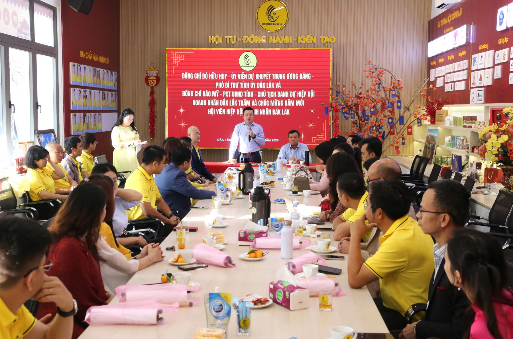 Sáng 25/2, Ủy viên dự khuyết Ban Chấp hành Trung ương Đảng, Phó Bí thư Tỉnh ủy Đỗ Hữu Huy và Phó Chủ tịch UBND tỉnh Đào Mỹ đã đến thăm, chúc mừng Hiệp hội Doanh nhân Đắk Lắk nhân dịp đầu Xuân Bính Ngọ 2026.