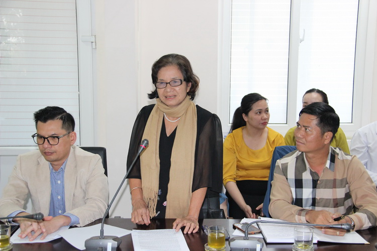Bà Đinh Thị Danh - Giám đốc Hợp tác xã Nấm Linh Chi huyện Krông Ana, nguyên Giám đốc Trung tâm dạy nghề huyện Krông Ana phát biểu ý kiến tại Hội thảo.