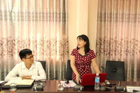 Thạc sĩ Bùi Thị Minh Tuyết, đại diện Ban chủ nhiệm báo cáo kết quả thực hiện đề tài