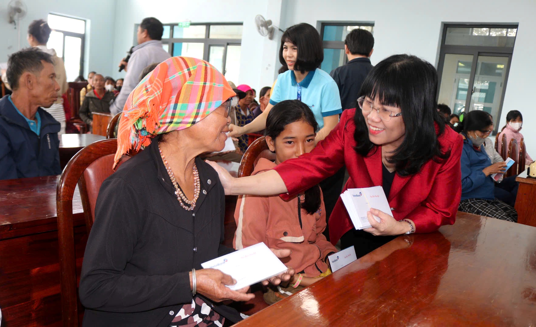 Phó Chủ tịch Thường trực UBND tỉnh Hồ Thị Nguyên Thảo tặng quà Tết cho người dân xã Sông Hinh.