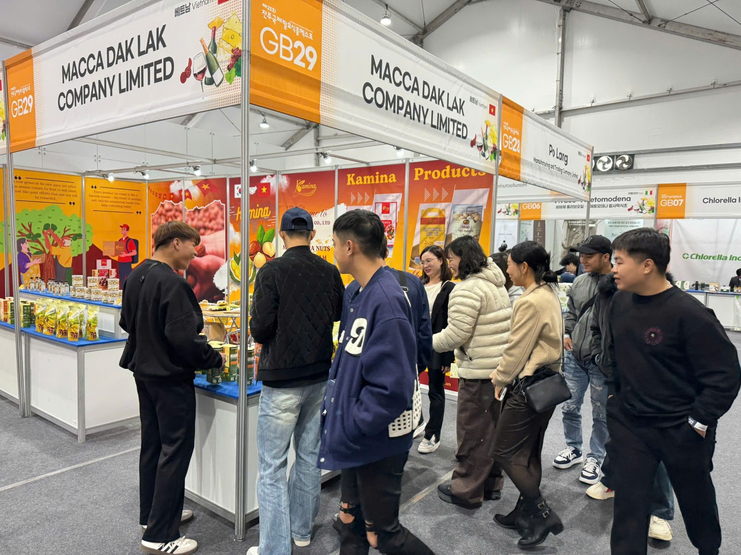 Người dân Hàn Quốc tham quan trải nghiệm gian hàng giới thiệu sản phẩm hạt macca Đắk Lắk - Ảnh : Sở Công Thương