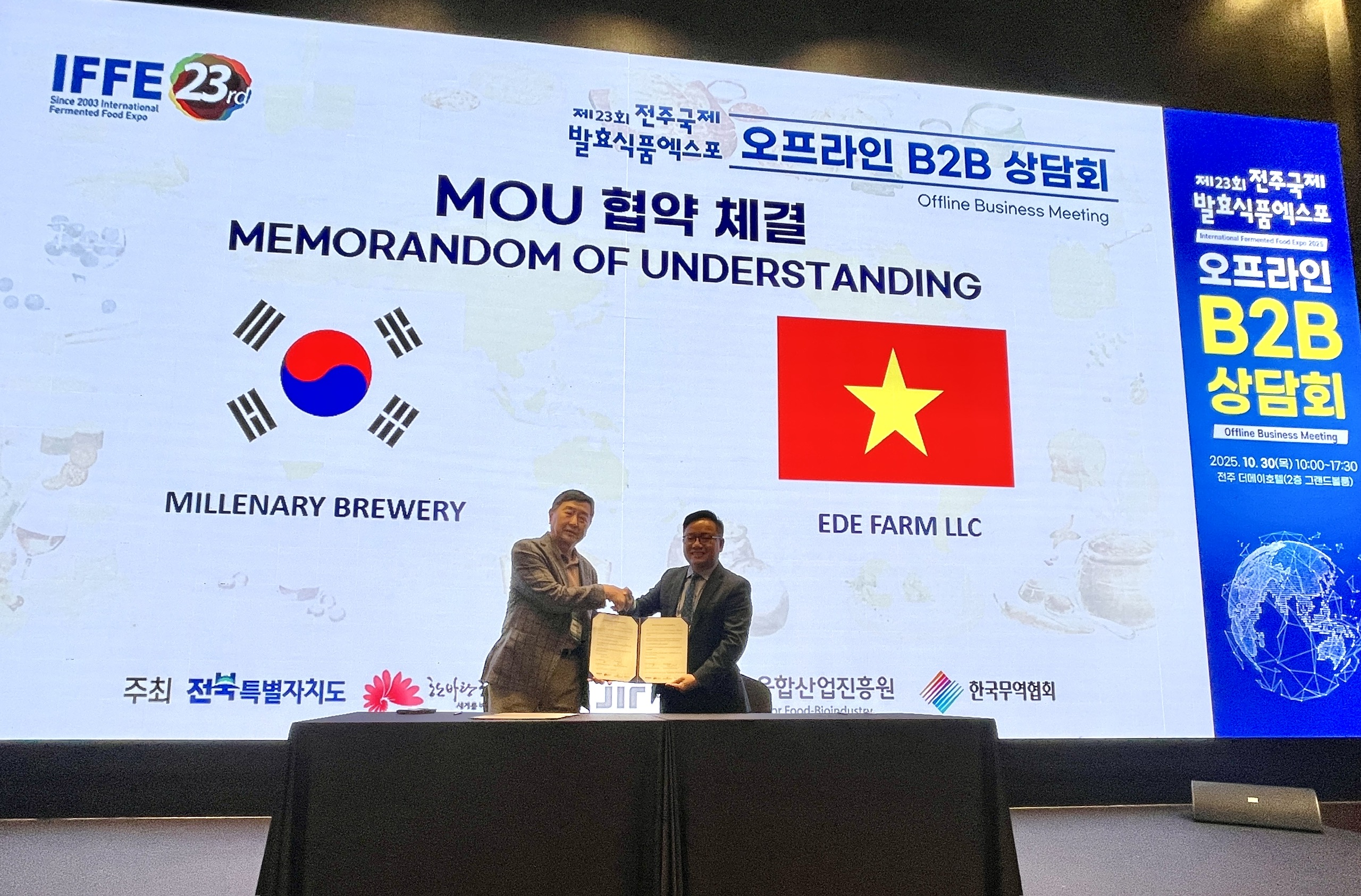 Triển lãm IFFE (International Fermented Food Expo) là triển lãm thực phẩm lên men quốc tế duy nhất của Hàn Quốc, có 25 năm lịch sử và 23 lần tổ chức. Năm 2025, sự kiện diễn ra từ ngày 30/10 đến hết ngày 3/11 tại Sân vận động World Cup Jeonju, quy tụ hơn 323 gian hàng nội địa và hơn 10 quốc gia tham dự như Việt Nam, Trung Quốc, Tây Ban Nha, Gruzia, Philippines, Indonesia.