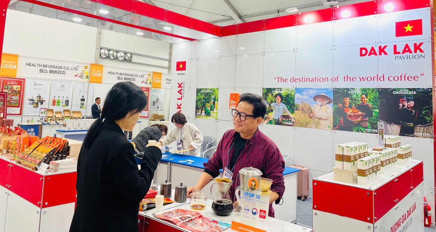 Ngày 30/10, Triển lãm Thực phẩm Lên men Quốc tế Hàn Quốc lần thứ 23 (IFFE 2025) đã khai mạc tại Sân vận động World Cup Jeonju, thành phố Jeonju, tỉnh Jeonbuk, Hàn Quốc. Tỉnh Đắk Lắk có 6 doanh nghiệp tiêu biểu tham gia giới thiệu và trưng bày mặt hàng cà phê cùng sản phẩm OCOP tới người tiêu dùng Hàn Quốc.