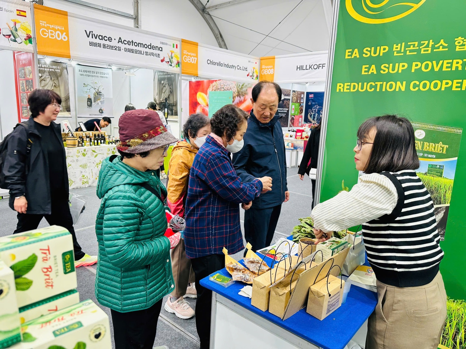 Hợp tác xã Giảm nghèo Ea Súp mang đến Triển lãm các sản phẩm tiêu biểu như gạo lứt hữu cơ Briêt giới thiệu với người tiêu dùng Hàn Quốc -Ảnh :Sở Công Thương