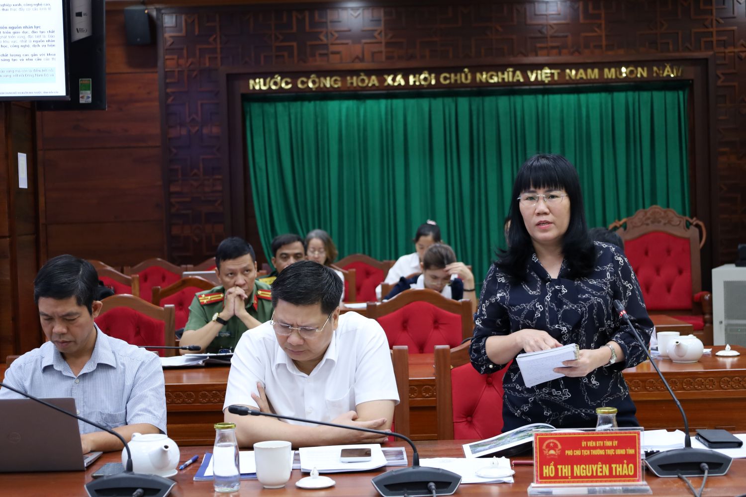 Đồng chí Hồ Thị Nguyên Thảo – Phó Chủ tịch Thường trực UBND tỉnh tham gia ý kiến.