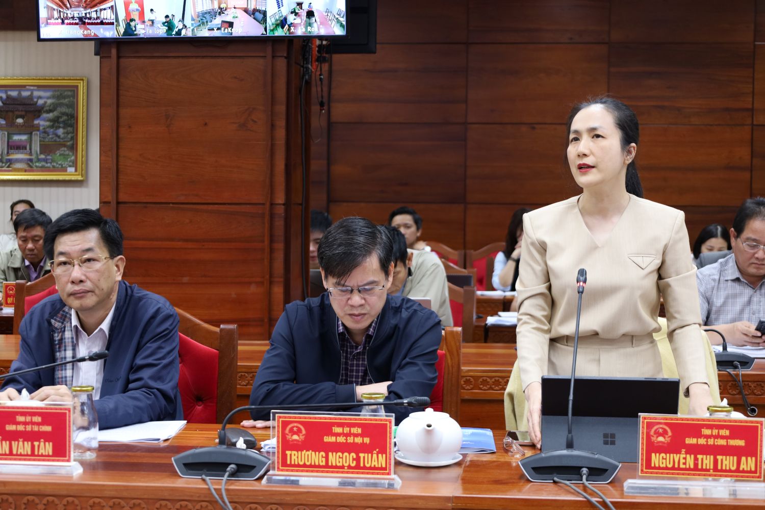 Đồng chí Nguyễn Thị Thu An – Giám đốc Sở Công Thương báo cáo tại hội nghị
