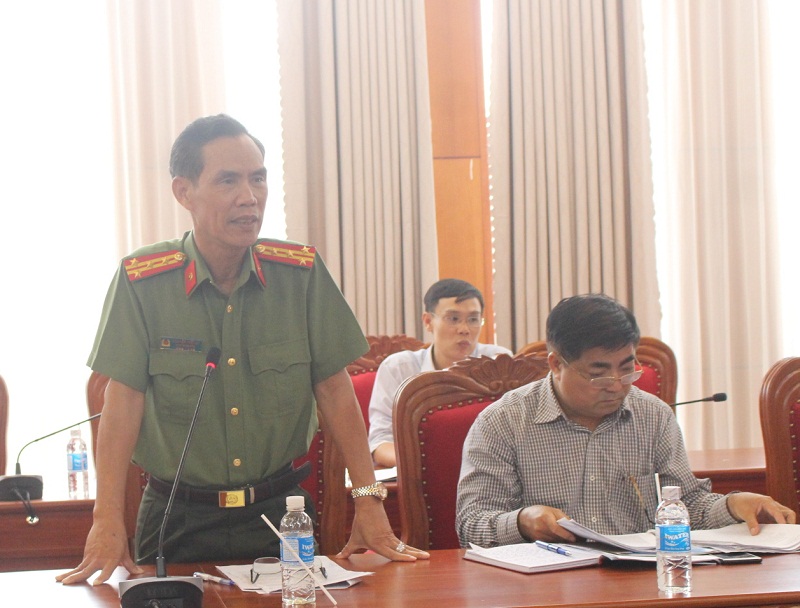 Đại tá Nguyễn Thế Lực – Phó Giám đốc Công an tỉnh thảo luận tại Hội nghị