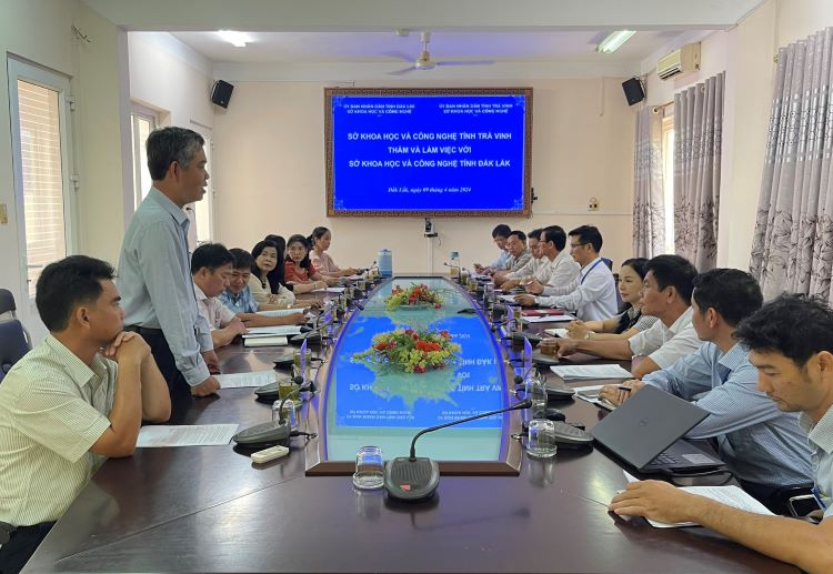 Sáng 09/4, Đoàn công tác Sở Khoa học và Công nghệ (KH&CN) tỉnh Trà Vinh do ông Trần Văn Út Tám - Phó Giám đốc Sở làm trưởng đoàn đã đến thăm và làm việc với Sở KH&CN tỉnh Đắk Lắk.