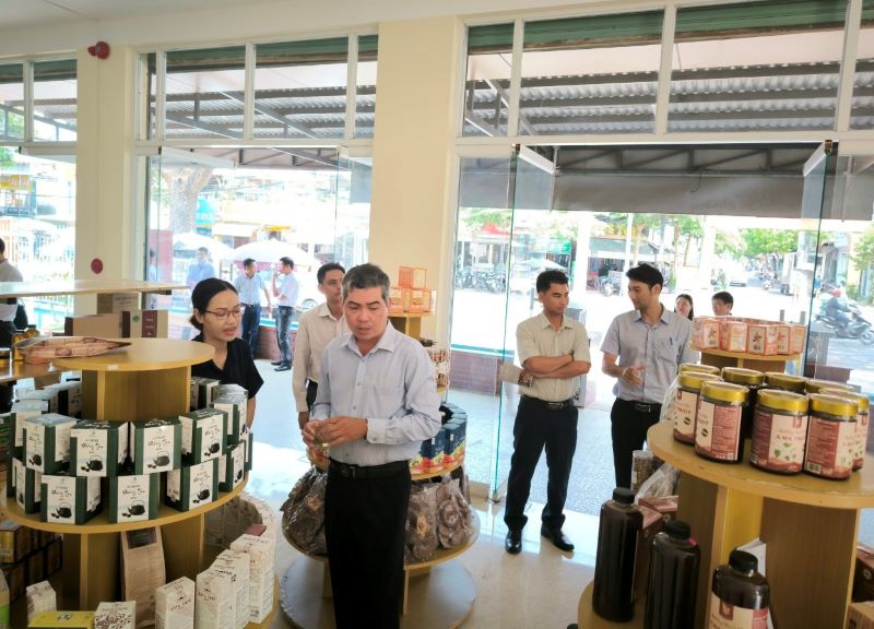 Đoàn Tham quan gian hàng trưng bày giới thiệu sản phẩm KH&CN tại Trung tâm Thông tin - Ứng dụng KH&CN tỉnh Đắk Lắk.
