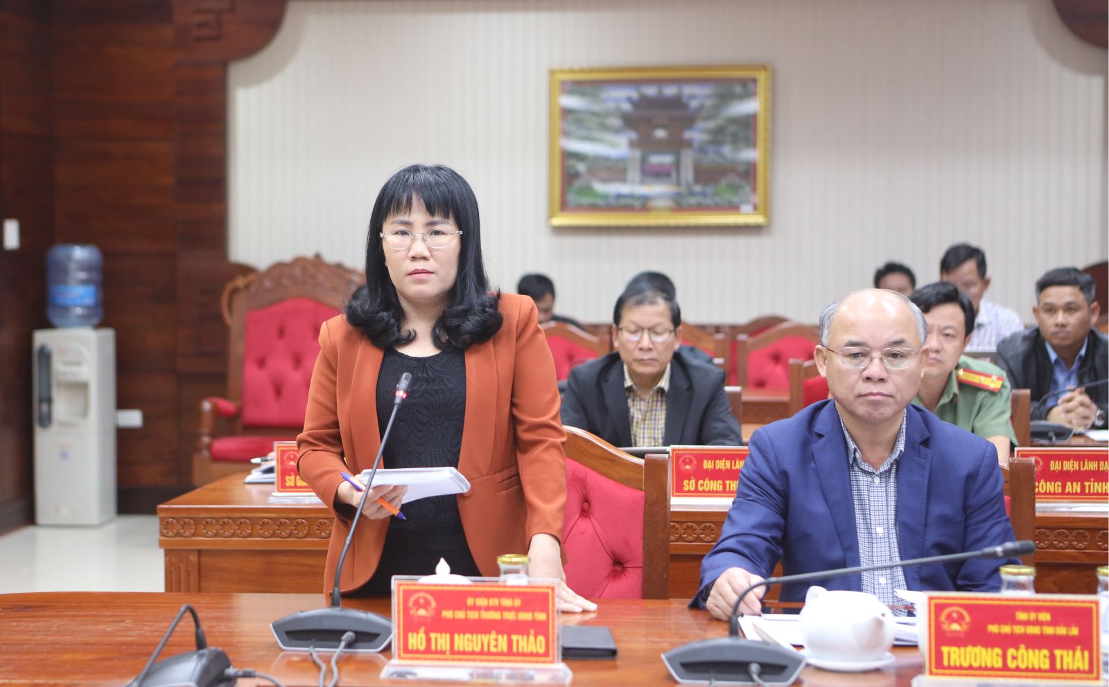 Ủy viên Ban Thường vụ Tỉnh ủy, Phó Chủ tịch Thường trực UBND tỉnh Hồ Thị Nguyên Thảo phát biểu tại hội nghị.