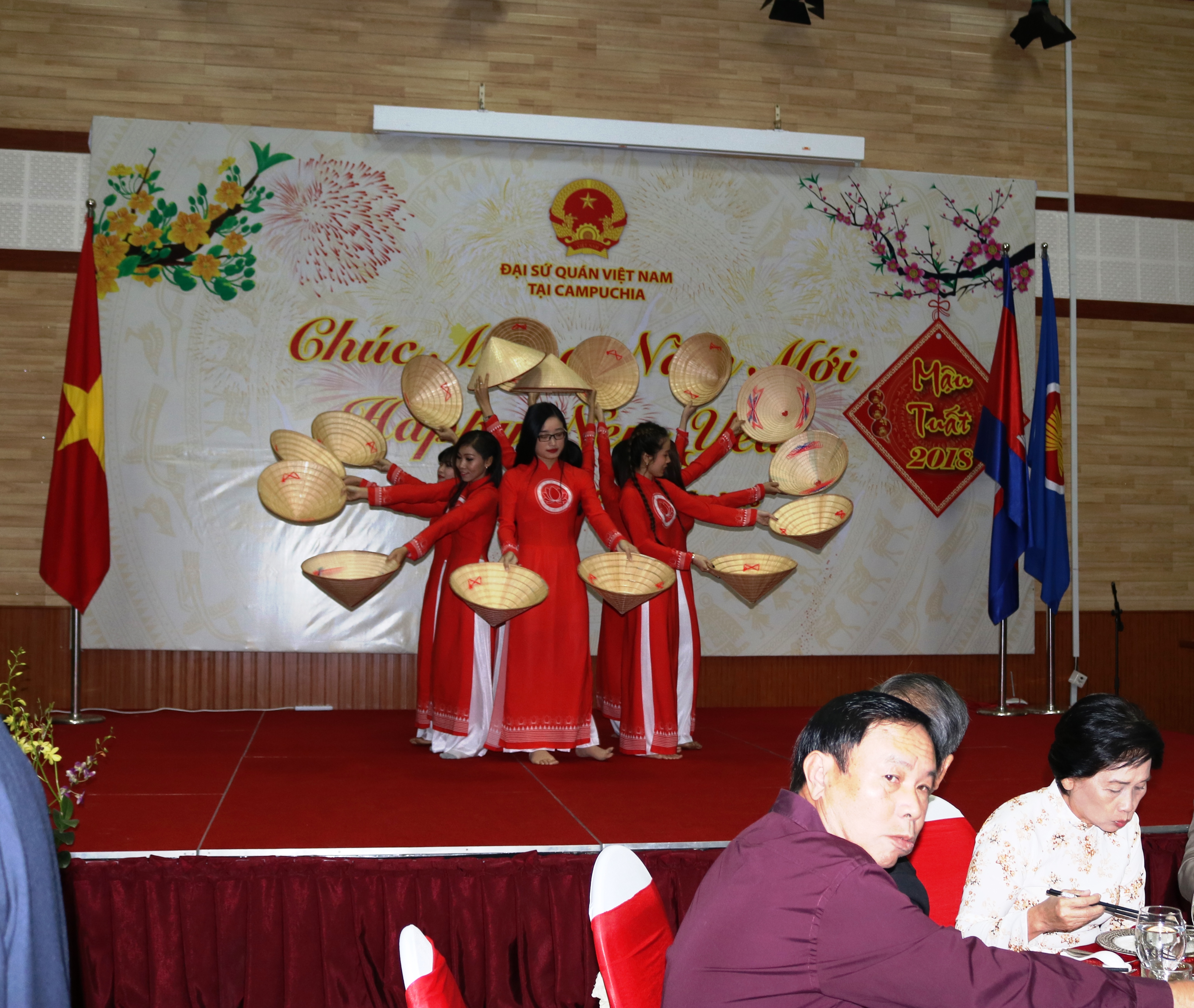 Đến tham dự Tết cổ truyền của dân tộc Việt Nam có hơn 300 khách, gồm đại diện Tổng Lãnh sự quán Việt Nam tại Battambang và Sihanouk Ville, Lãnh đạo và Sở Ngoại vụ các tỉnh, thành phố của Việt Nam có chung đường biên giới với Campuchia: (KonTum, Gia Lai, Đắk Lắk, Đắc Nông, Bình Phước, Tây Ninh, Long An, Đồng Tháp, An Giang và Kiên Giang), cùng kiều bào, cán bộ, học sinh sinh viên Việt Nam đang sinh sống, công tác và học tập tại Thủ đô Phnôm Pênh – Vương quốc Campuchia và thành viên các gia đình Đại sứ quán.