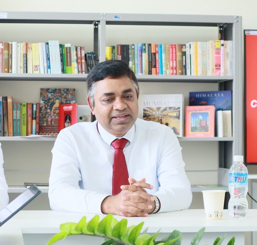 Ông Madan Mohan Sethi - Tổng Lãnh sự quán Ấn Độ tại TP. Hồ Chí Minh phát biểu cảm ơn lãnh đạo Trường Đại học Tây Nguyên