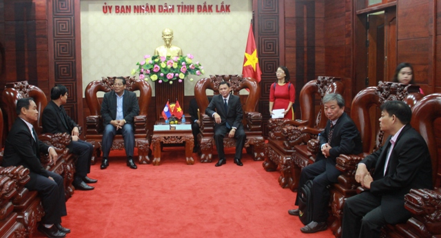 Sáng 22/12, Đoàn công tác tỉnh Chămpasắk- Cộng hòa Dân chủ Nhân dân Lào do ông Bualin Vongphachan, Phó Tỉnh trưởng tỉnh Chămpasắk làm trưởng đoàn đã đến thăm và chia sẻ những thiệt hại do cơn bão số 12 với nhân dân tỉnh Đắk Lắk. Tiếp và làm việc với Đoàn có Phó Chủ tịch UBND tỉnh Nguyễn Tuấn Hà; lãnh đạo Sở, ngành.