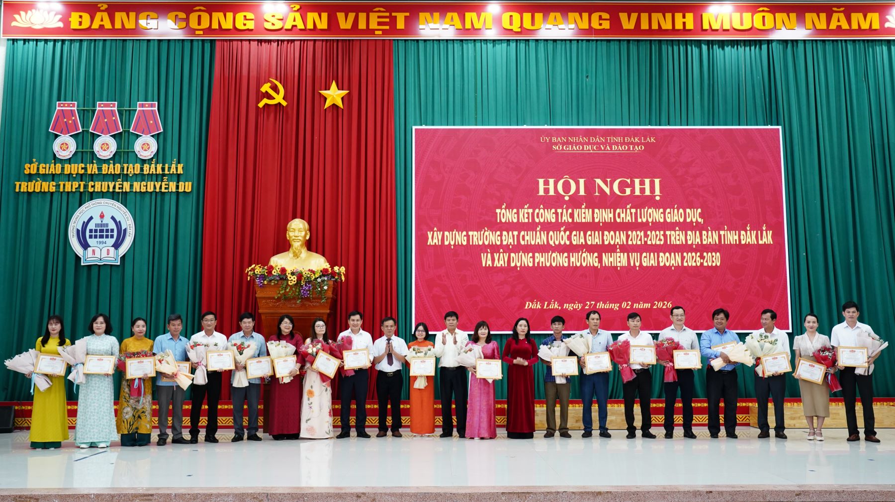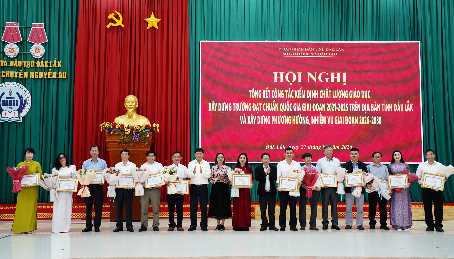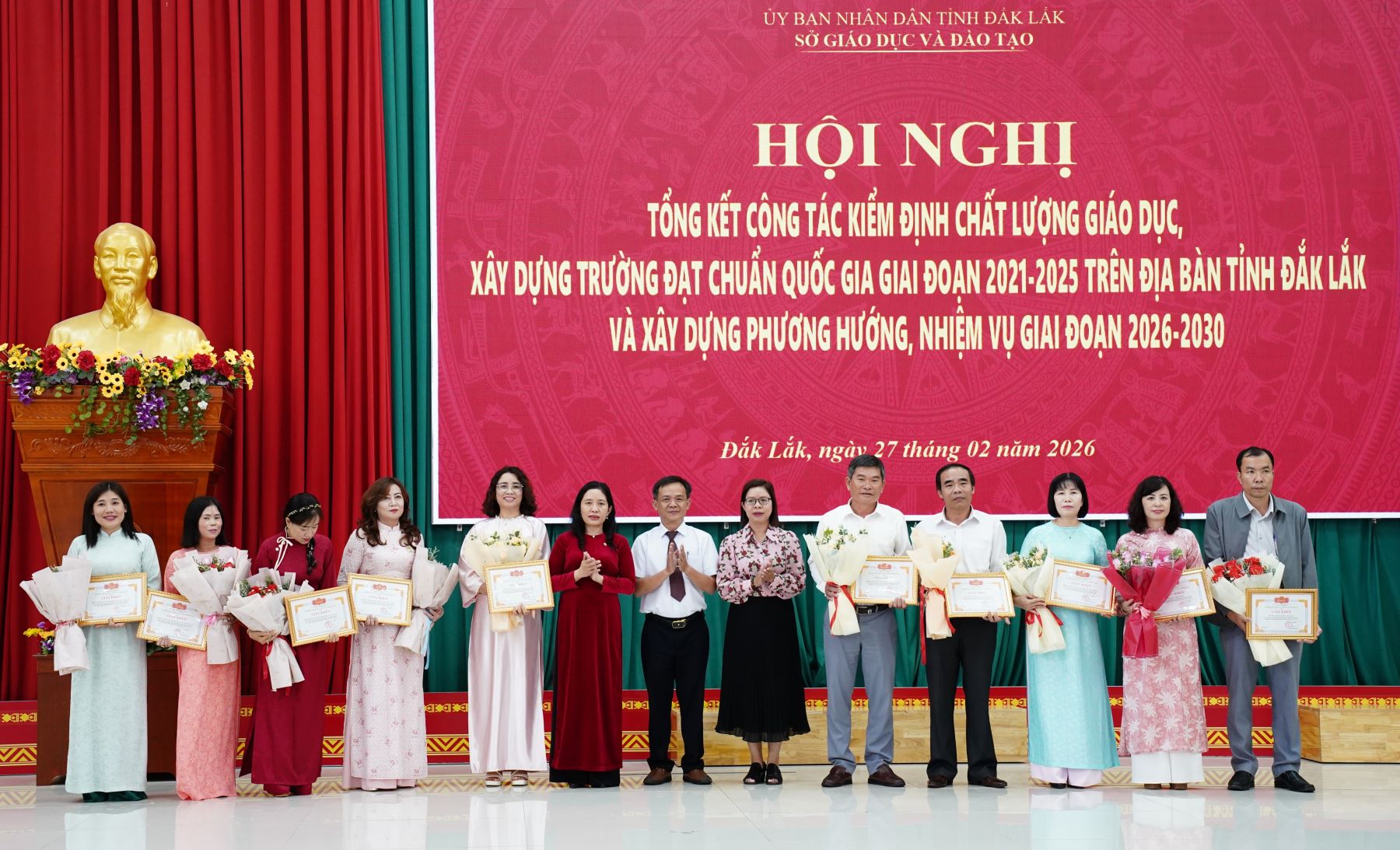 Nhân dịp này, UBND tỉnh đã tặng Bằng khen cho 15 tập thể và 15 cá nhân; Sở Giáo dục và Đào tạo tặng Giấy khen cho 10 tập thể, 20 cá nhân có thành tích xuất sắc trong công tác kiểm định chất lượng giáo dục, xây dựng trường đạt chuẩn quốc gia giai đoạn 2021-2025.