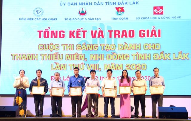 Trong đó, giải Đặc biệt thuộc về Mô hình “Thiết bị tự động đo và báo lượng tiêu thụ nước máy sinh hoạt” của em Đoàn Thị Giang Son và Nguyễn Xuân Đạt (Trường THCS Dur Kmăn, huyện Krông Ana); 2 giải Nhất thuộc về đề tài “Hệ thống nhắc nhở, cảnh báo và liên lạc khi trẻ nhỏ bị bỏ quên trên ôtô” của em Nguyễn Thị Quỳnh Lan và Nguyễn Thị Thùy Châm (Trường THCS Trần Quang Diệu, huyện Cư Mgar) và “Mô hình phát triện phá rừng và cháy rừng từ xa” của em Đỗ Lê Minh Quân và Trần Đại Lợi (Trường THCS Phan Bội Châu, TP. Buôn Ma Thuột).