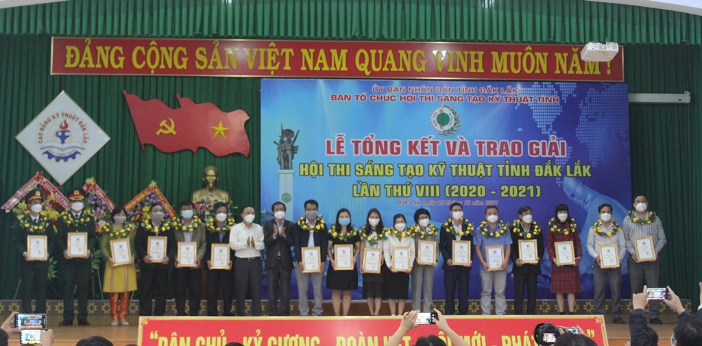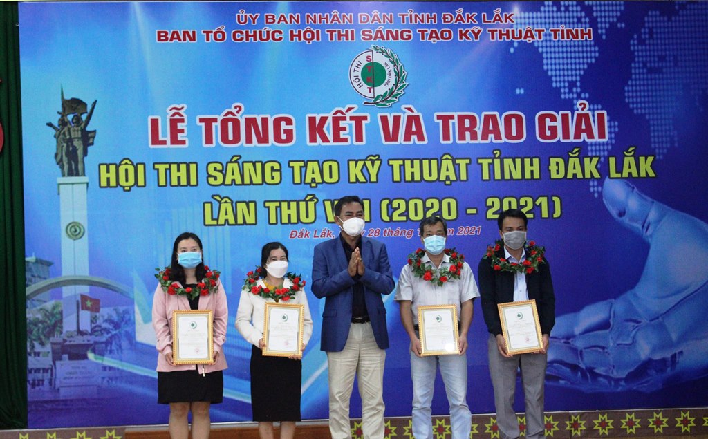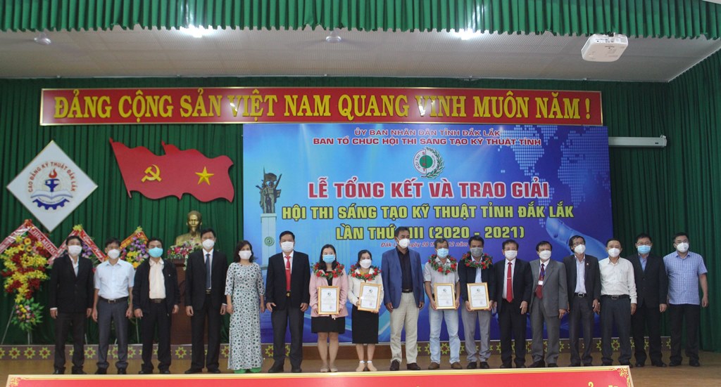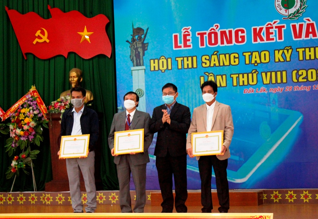 Tại lễ tổng kết, UBND tỉnh tặng Bằng khen cho 3 tập thể (Trường Cao đẳng Kỹ thuật tỉnh Đắk Lắk; Ban Thông tin, Phổ biến kiến thức và Hội viên - Liên hiệp các Hội KH&KT tỉnh; nhóm tác giả đề tài “Ứng dụng công nghệ sấy nhiệt độ thấp và kiểm soát độ ẩm, nhiệt độ kho để bảo quản hạt giống cà phê trong thời gian dài” thuộc Viện Khoa học Kỹ thuật Nông lâm nghiệp Tây Nguyên) và 3 cá nhân (ông Vương Hữu Nhi, Chủ tịch Liên hiệp Hội, Phó Trưởng ban Thường trực BTC Hội thi; ông Nguyễn Đình Hiền, Phó Chủ tịch Liên hiệp Hội, Phó Trưởng ban BTC Hội thi; ông Lê Văn Dần, Trưởng ban Khoa học Công nghệ và Tư vấn phản biện thuộc Liên hiệp Hội, Tổ trưởng Tổ Thư ký Hội thi). Ban tổ chức Hội thi tặng Giấy khen cho 6 tập thể và 12 cá nhân có thành tích trong công tác triển khai thực hiện thành công Hội thi.