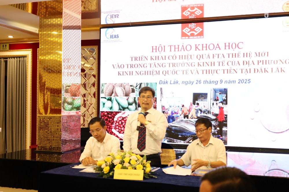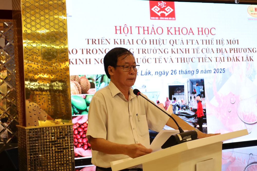 Phát biểu khai mạc, TS. Đinh Khắc Tuấn, Chủ tịch Hội đồng Khoa học Viện Kinh tế và Quản lý Tây Nguyên, nhấn mạnh tăng trưởng kinh tế như thế nào để vừa bền vững vừa góp phần thúc đẩy bảo vệ môi trường, đáp ứng các tiêu chí kinh tế xanh, kinh tế tuần hoàn, kinh tế số là quyết sách hàng đầu của tỉnh Đắk Lắk. Thời gian qua, hoạt động xuất khẩu các sản phẩm nông ngư nghiệp, đặc biệt là các sản phẩm chủ lực về nông sản đã đóng góp vào tăng trưởng kinh tế của tỉnh. Tuy nhiên, việc khai thác và tận dụng hiệu quả những lợi thế mà các FTA thế hệ mới mang lại vẫn còn là một thách thức lớn.