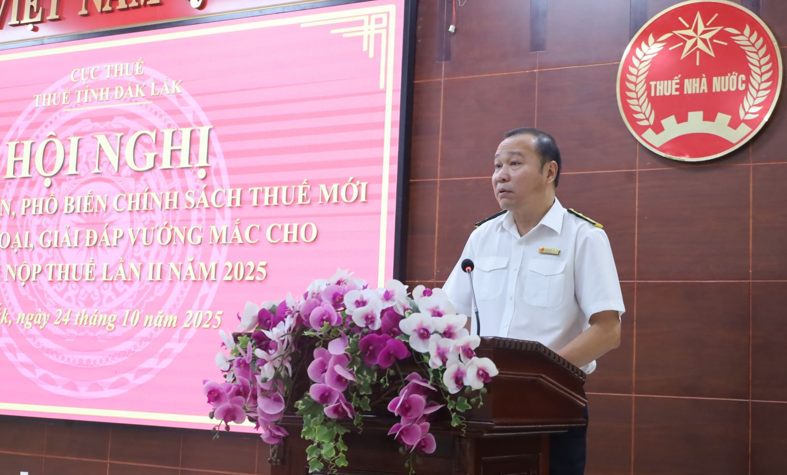 Tại hội nghị, các đại biểu đã được tuyên truyền, phổ biến các chính sách thuế mới như: Một số quy định quan trọng của Nghị định số 181/2025/NĐ-CP ngày 01/7/2025 của Chính phủ và Thông tư số 69/2025/TT-BTC ngày 01/7/2025 của Bộ Tài chính quy định và hướng dẫn chi tiết một số điều của Luật Thuế Giá trị gia tăng số 48/2024/QH15; những điểm mới đáng chú ý của Luật Thuế Thu nhập doanh nghiệp số 67/2025/QH15 được Quốc hội thông qua ngày 14/6/2025; một số trường hợp được miễn, giảm tiền sử dụng đất, tiền thuê đất theo quy định của Nghị định số 230/2025/NĐ-CP ngày 19/8/2025 của Chính phủ; những điểm mới của Nghị định số 20/2025/NĐ-CP ngày 10/02/2025 (sửa đổi, bổ sung một số điều của Nghị định số 132/2020/NĐ-CP ngày 05/11/2020) của Chính phủ quy định về quản lý thuế đối với doanh nghiệp có giao dịch liên kết; chính sách thuế và việc triển khai sử dụng hóa đơn điện tử khởi tạo từ máy tính tiền áp dụng đối với hộ kinh doanh, cá nhân kinh doanh.