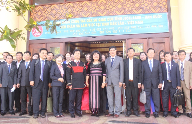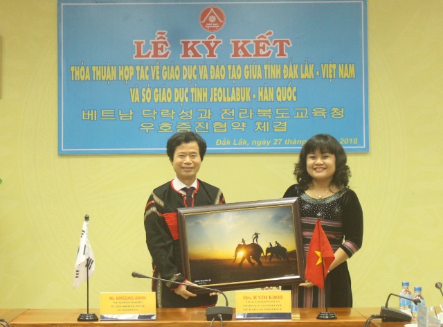 Nhằm góp phần nâng cao chất lượng giáo dục - đào tạo và thúc đẩy sự hiểu biết lẫn nhau giữa hai nền văn hóa Việt Nam và Hàn Quốc, sáng 27/2, UBND tỉnh Đắk Lắk đã tổ chức Lễ ký kết Bản ghi nhớ hợp tác về giáo dục - đào tạo với Sở Giáo dục tỉnh Jeollabuk (Hàn Quốc). Tham dự buổi Lễ có bà H’Yim Kđoh - Phó Chủ tịch UBND tỉnh; ông Kim Seung Hwan – Tổng Giám đốc Sở Giáo dục tỉnh Jeollabuk cùng đại diện lãnh đạo các Sở, ngành, đơn vị có liên quan.
