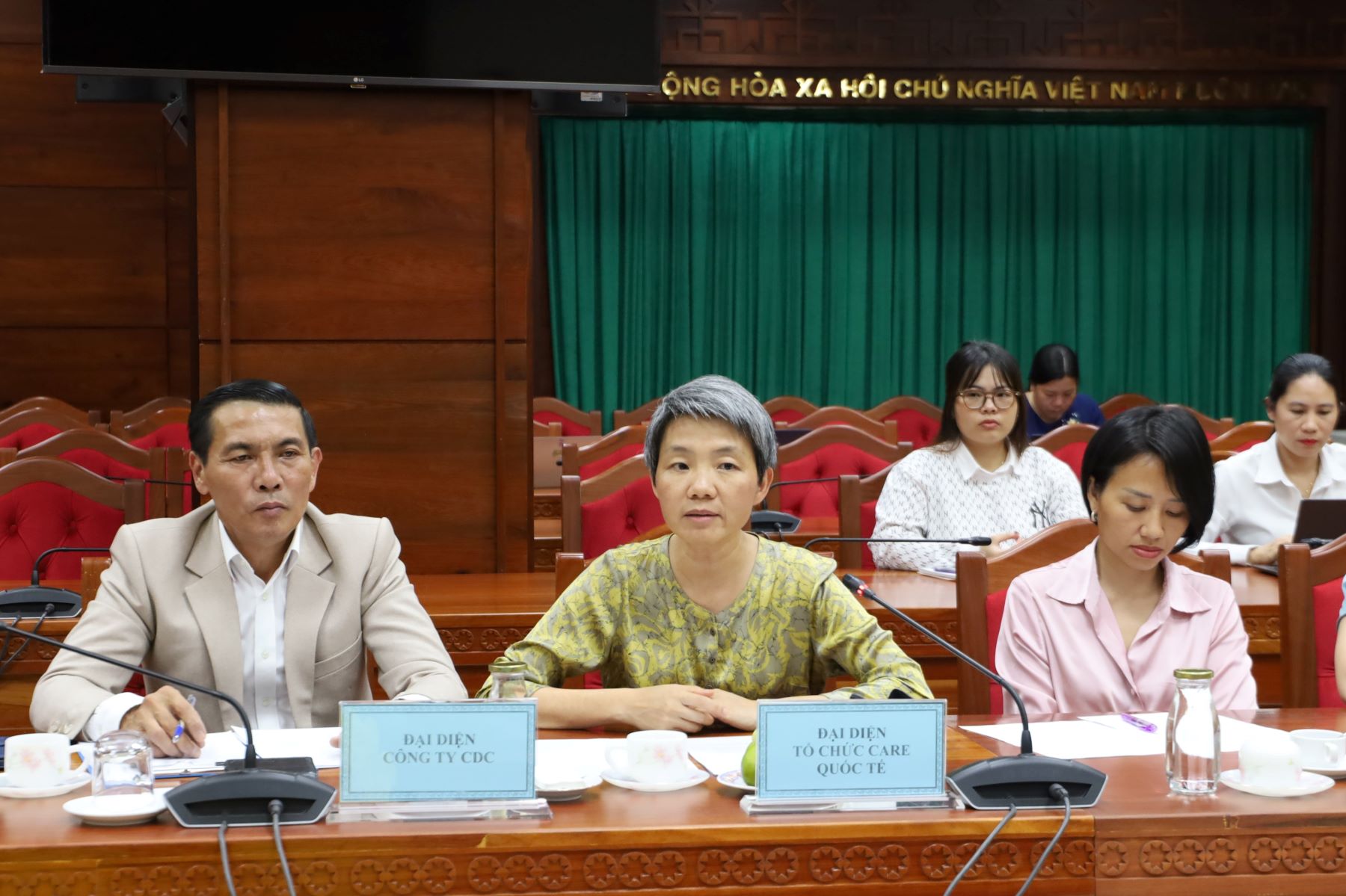 Bà Lê Kim Dung - Giám đốc Quốc gia của Tổ chức CARE tại Việt Nam (giữa) phát biểu tại buổi làm việc.