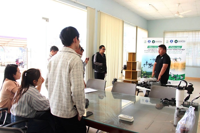 Trong khuôn khổ lễ bàn giao, đại biểu đã được Công ty TNHH Công nghệ và Dịch vụ Dtrack trình bày chi tiết các tính năng của DJI Agras T50 và hướng dẫn sơ bộ cách sử dụng thiết bị. Đồng thời tập huấn, hướng dẫn cách lái máy bay sử dụng phun thuốc, phân và giống với hai chế độ lái tự động và thủ công, phù hợp với nhiều địa hình khác nhau. Sau lễ bàn giao, DJI T50 sẽ được trưng bày và giới thiệu tại Gian hàng trung bày sản phẩm của Trại Thực nghiệm Khoa học và Công nghệ huyện Cư M'gar.