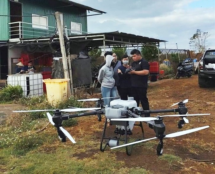 Lái thử nghiệm DJI T50 tại Hợp tác xã Nông nghiệp Công nghệ cao Xanh Cao Nguyên.